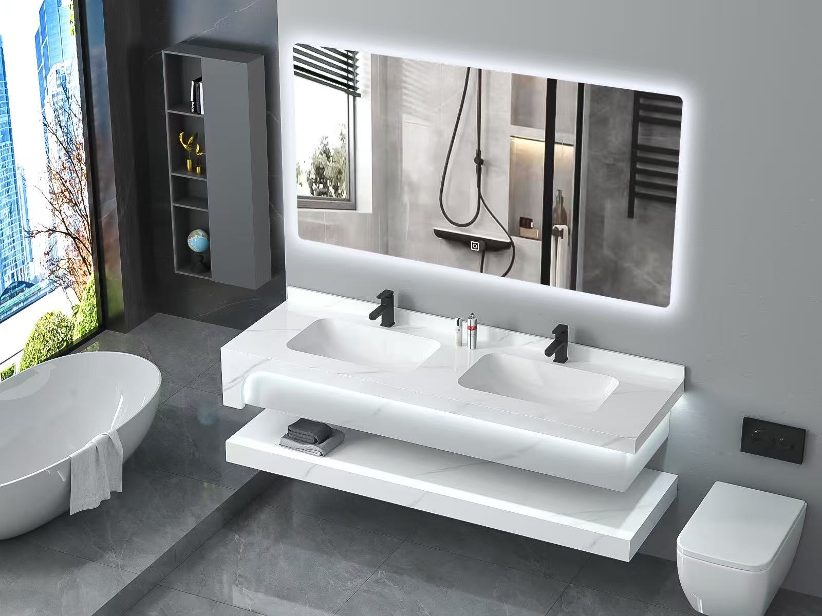 L’Eterna Marble Duo se distingue par ses lignes épurées, sa finition en céramique effet marbre et son design minimaliste. Léger, durable et élégant, il apporte une touche de raffinement à tout espace. Parfait pour les salles de bain modernes, les hôtels, les villas ou les projets de décoration haut de gamme.
